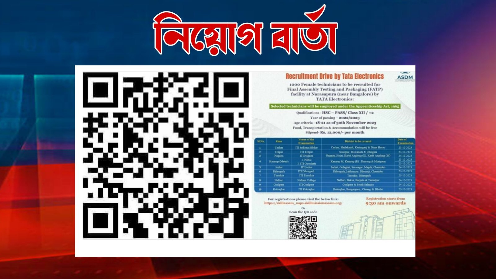 ৪. Tata Recruitment Drive ৰ পৰীক্ষা অহা ২৪ ডিচেম্বৰ ২০২৩ তাৰিখে ITI Jorhat ত অনুষ্ঠিত হব।